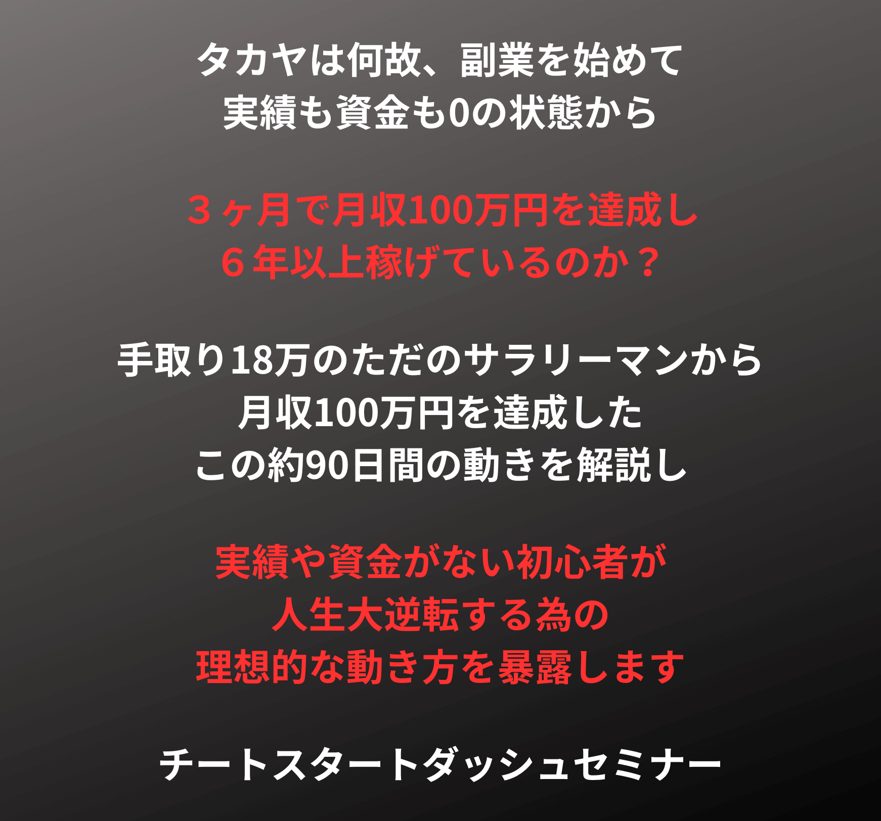 チートスタートダッシュセミナー:価格1万円